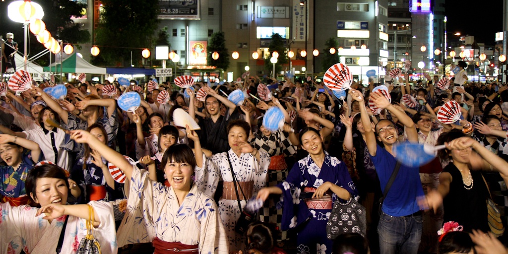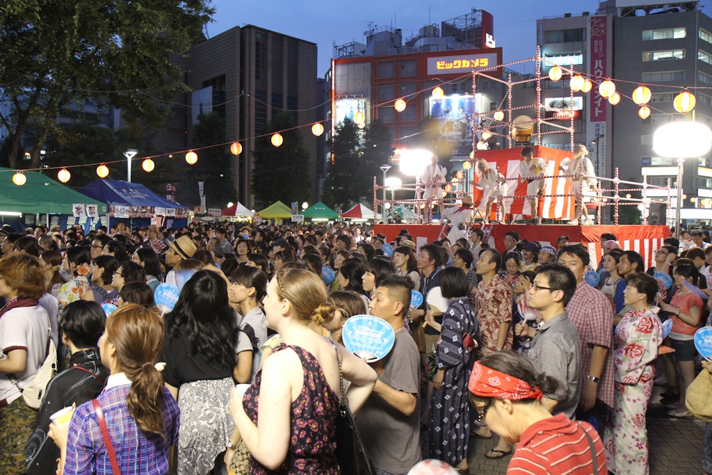 Next summer, check out the Owl Spot website for details on this must-experience event. There is limited information in English but unfortunately details of this year’s Bon-odori were in Japanese only. Good news is though, it was very obvious on the site – on the rolling banner at the top of the homepage. Look out for the red and white stripes associated with the event and these characters にゅ~盆踊り. Even if you can’t read Japanese, you should be able to pick out the date/time as they are written numerically. Japanese dates are written like this: 7月29日 (the first character being ‘month’ and the second ‘day’ i.e. July 29th). Location is currently Ikebukuro West Gate Park (池袋西口公園 Ikebukuro Nishi-guchi Kōen). Click here for directions from Ikebukuro Station.
