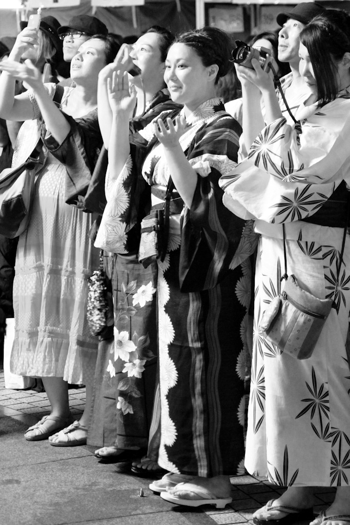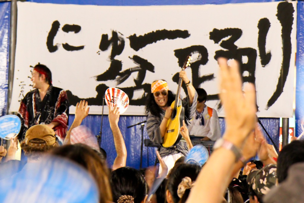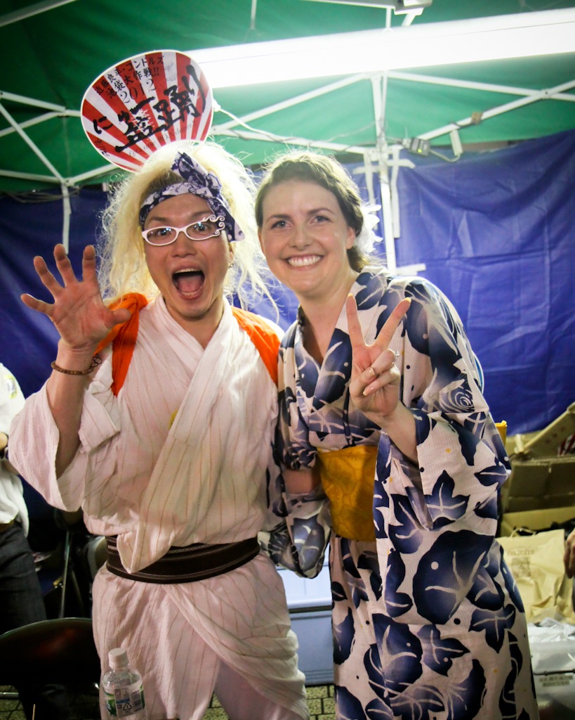 One of the highlights of the night was when some foreigners stumbled upon the event, not sure what was going on. One of the dancers on stage asked “Do you speak England?” We couldn’t hear/see their response but we assume they confirmed this because the next thing he said was “OK, let’s dance together!” And that’s the spirit of the Bon-odori! As they say, “You’re a fool if you dance, and a fool if you just look on. If you’re going to be a fool anyway, you might as well dance!”
