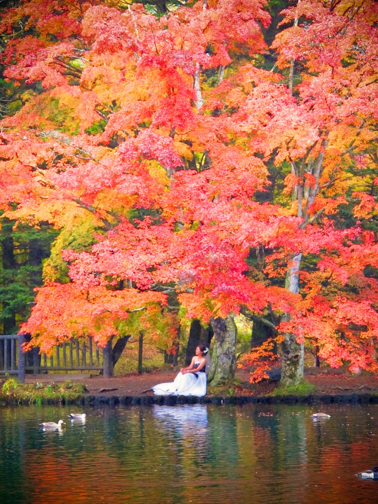 A number of churches and chapels have been built in the area since Alexander Croft Shaw built a cathedral there in 1895, making it a premiere location for western style weddings. The current Emperor and Empress of Japan actually met on a tennis court in Karuizawa back in 1957 and from then on, the image of Karuizawa as a luxury resort town evolved to one of fairy tale romance. The cobbled streets, tree-lined avenues and natural water sources provide a stunning backdrop for bridal pictures. During our two-day trip, we saw brides the town over, taking advantage of the red, orange and yellow hues of the leaves, particularly striking against their white dresses.