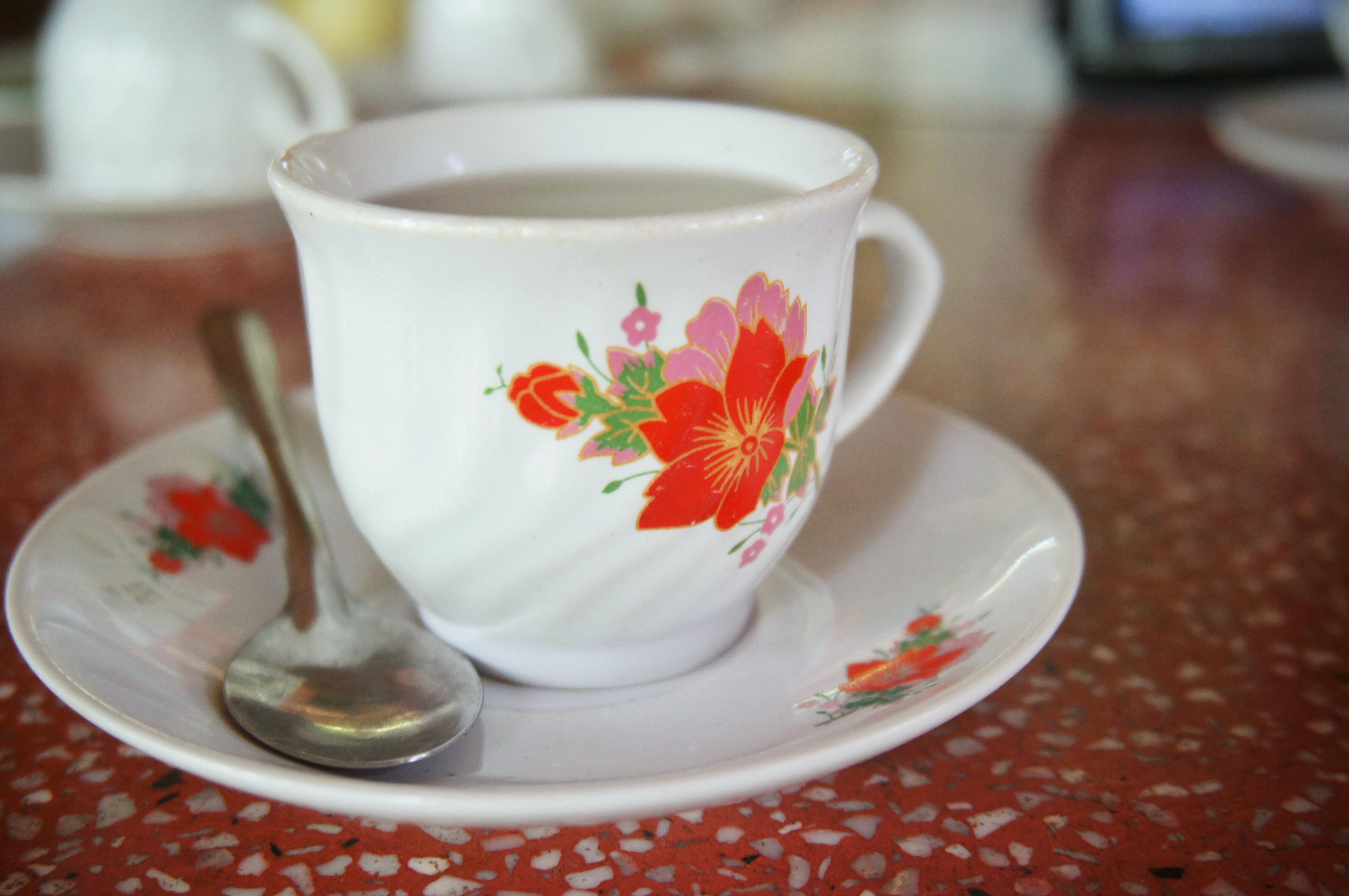 The group of women greeted us warmly and asked us to come in for a chat. We ordered two white ice coffees first, as usual. “We’ve actually just come off the bus and are quite hungry. Do you also sell food?” Hai asked. They didn’t, but said they could get us some. “What do you want?” “Anything you recommend.” “OK, you have to try this dish.” Two of the ladies hopped on a motorbike and came back a short time later balancing two bowls of soup with dipping bread that was deliciously deep-fried like a donut. As we ate and drank, they asked a lot of questions and told us about their families and their children.