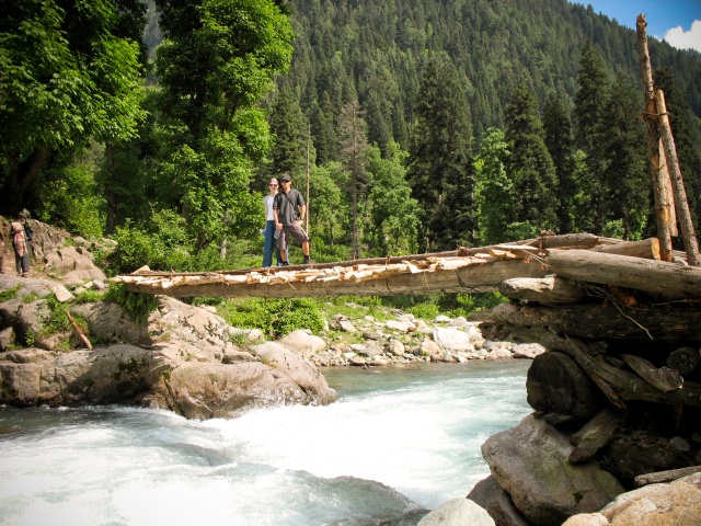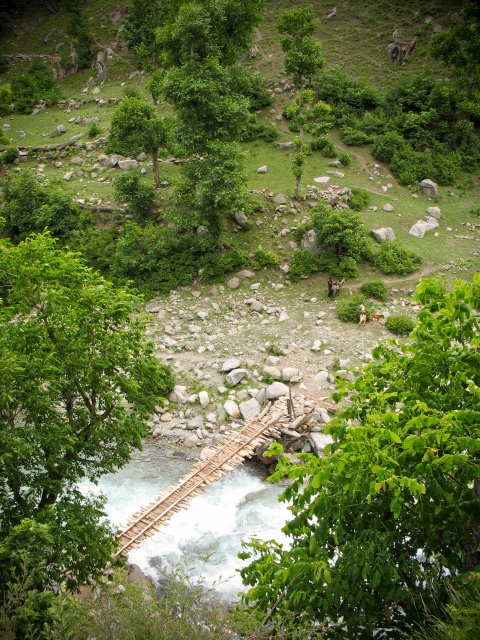 We reached a makeshift wooden bridge over an ice-cold river, after this we had to go by foot.
