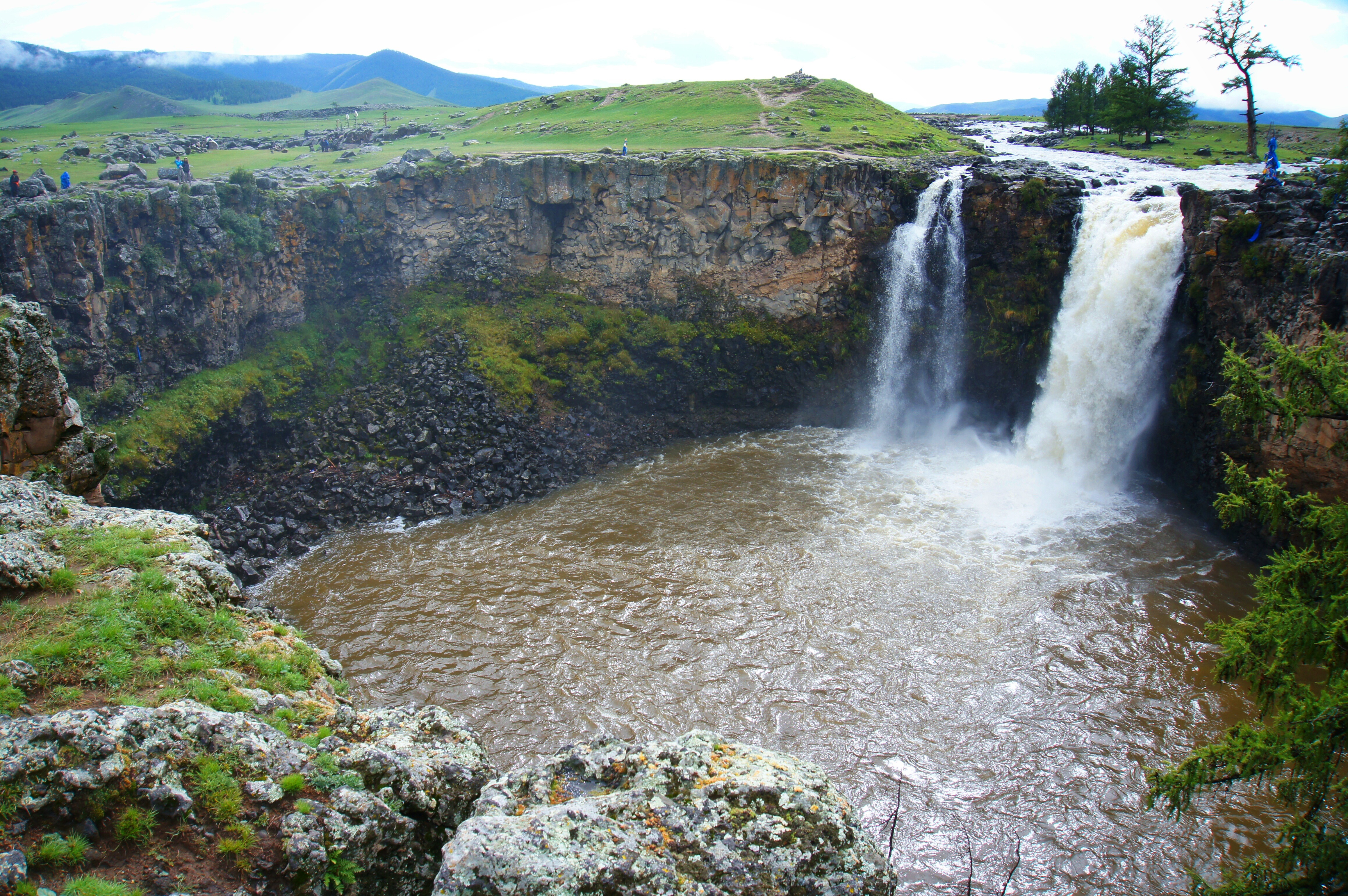 The “big waterfall,” the main reason why people camp at this particular point in the Orkhon Valley, was not too far off. The guide had pointed out a house with a red roof in the distance. We should continue following that line. The river branched off into all kinds of smaller waterways. We jumped from bank to bank, strategizing on the best route to reduce the number of jumps required and chances of getting wet. With some requiring a good run-up to maximize air-time and distance, it was equally a leap of faith as it was with one’s legs.