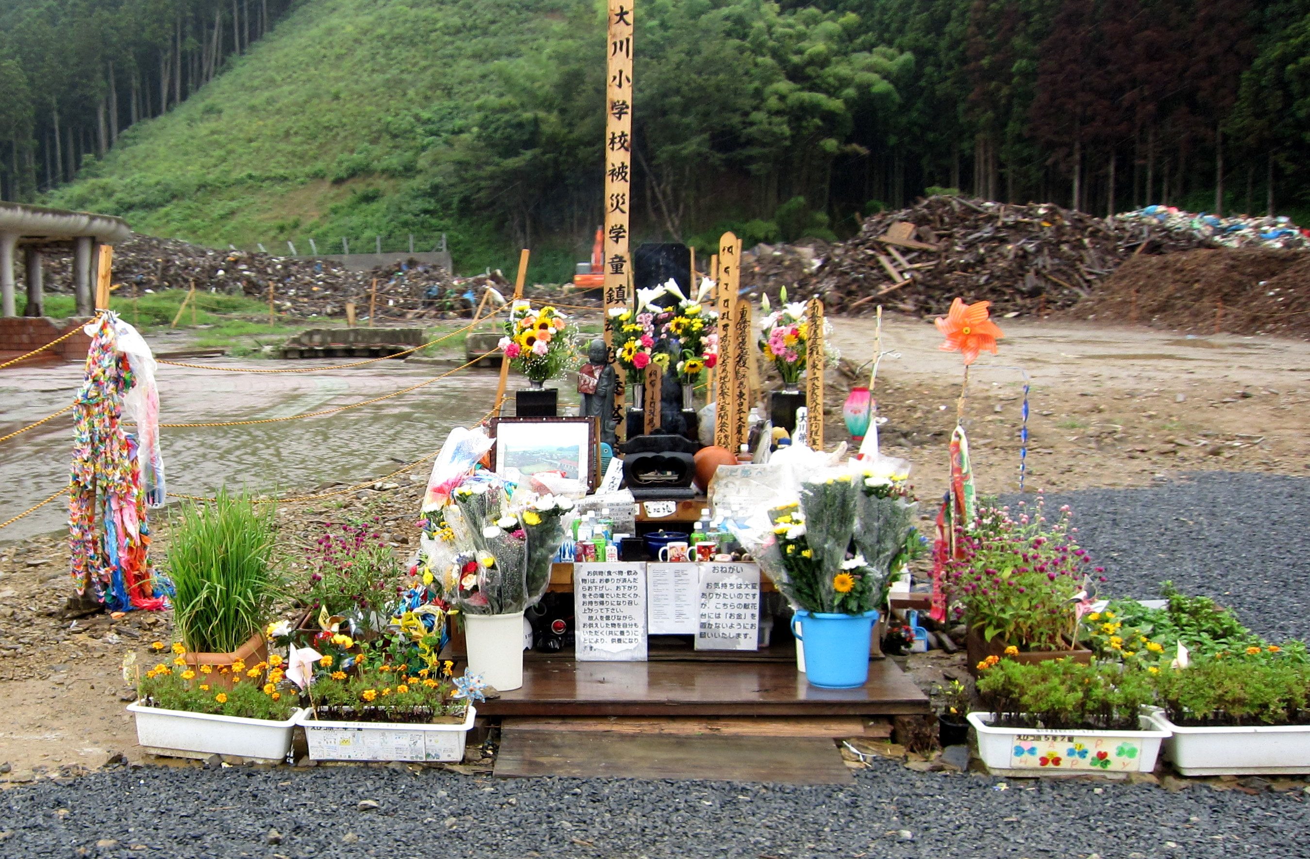 The rest of the volunteers went by bus, while we slowly followed along the dusty path by car, often having to pull aside to allow vehicles traveling in the opposite direction to pass. It was the most devastated area I have seen to date. The town had been obliterated. We passed by the elementary school, now a shrine to the 67 children who died there. I shook my head in disbelief as we continued through this terrible dream-like scene. The road was surrounded by water. Water reaching so far off into the distance that I thought it was a bay leading out into the open ocean. But this water never used to be here. This was tsunami water that just never receded or only partly so. Submerged beneath this newly formed lake was a densely populated residential area and all its memories.