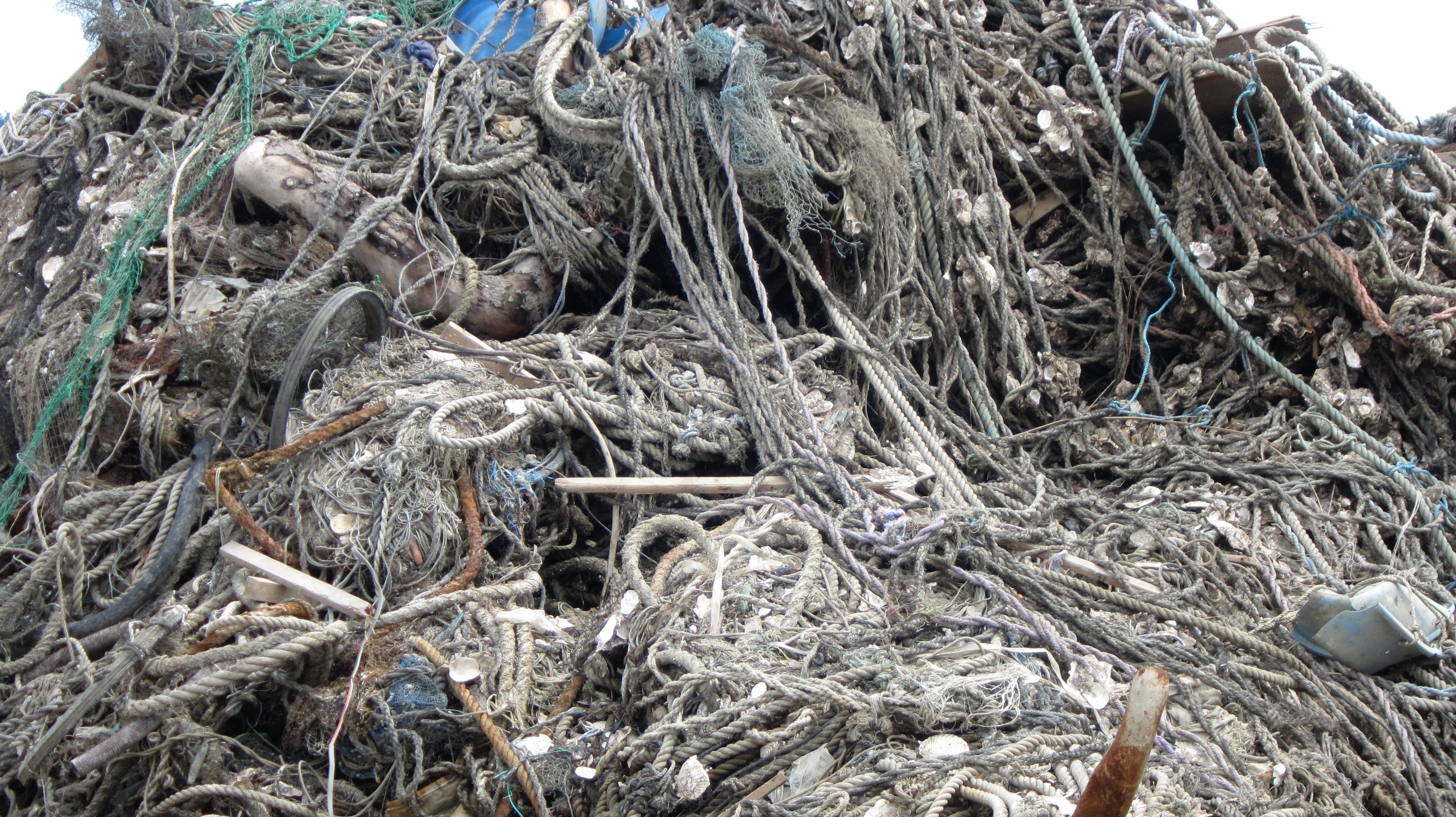 It was an incredibly hot day. Until now we had been lucky with overcast weather, even the occasional shower, a blessing in early August. We arrived to find piles and piles of ropes all tangled together while machinery was pulling even more debris from the bay and adding it to the growing mountains around us.